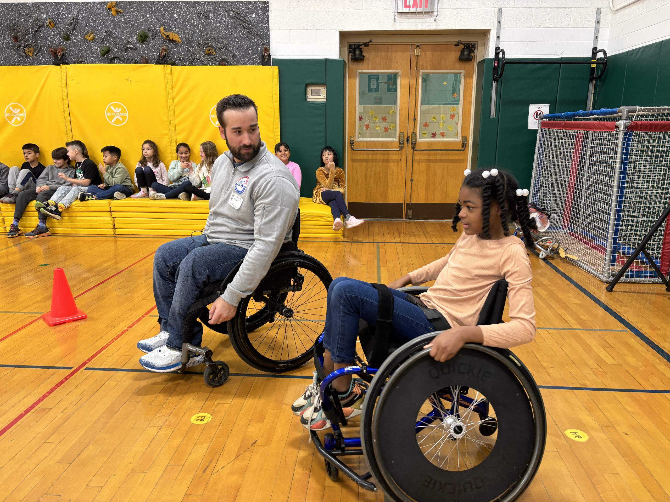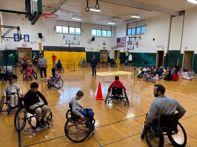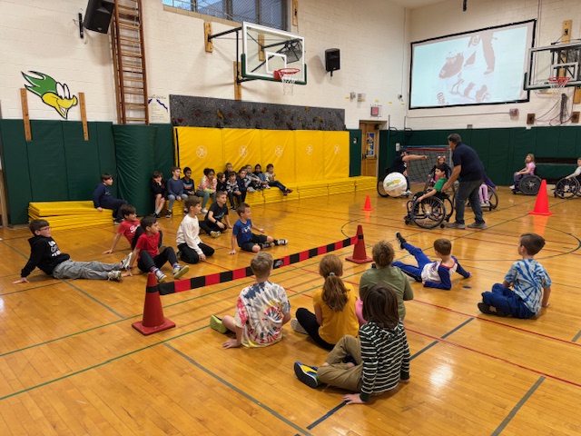 In 2024, GBAS started a school-based physical education class initiative so that more students could experience adaptive sports. We lend schools 20+ youth sports wheelchairs, allowing teachers to build an adaptive curriculum for the week. This time often includes a presentation or live book reading by GBAS’s Adam Page, where Adam shares the importance of students being included, siting his own elementary school teacher for supporting his passion of sports. All students deserve access to physical activity and the joy of playing with their friends.
