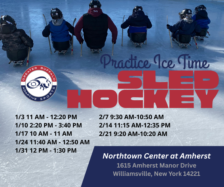 We have worked with the Buffalo Sabres Sled Hockey Program since they were the “Niagara Challengers”, Adam’s first sled hockey team. In Nov. 2025, we teamed up to host a “Try-it Event” for new athletes interested in the sport. Women’s National Sled Hockey Team member and Buffalo native, Maddy Eberhard, joined athletes on the ice and shared her own sled hockey experience coming up through the program and the journey to the Women’s World Para Ice Hockey Championships.