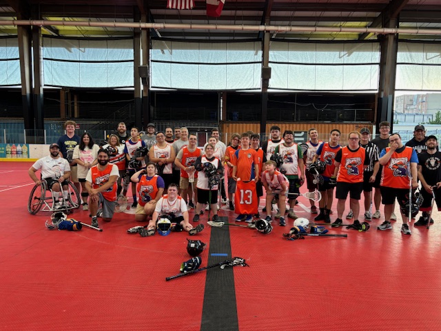 We now have more than 25 athletes participating in our Monday night stand-up lacrosse program. Our adult wheelchair lacrosse team coaches the sessions along with local high school lacrosse athletes. During the final session of 2024, our athletes showed their skills in scrimmages, which featured surprise visits from Buffalo Bandits players Tehoka Nanticoke and Zack Belter.